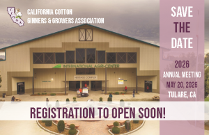 The California Cotton Ginners and Growers Association is pleased to announce the re-election of the following board members. Re-elected to the board were the following Ginners: Raymond Gomez, J.G. Boswell Company and Kirk Kilkey, Cross Creek II Gin LLC. The following Growers were re-elected: Fresno County: Gary Martin, Wyatt McKean and Renato Serrano; Tulare County, Doug Cardoza. All board member positions are three-year terms.