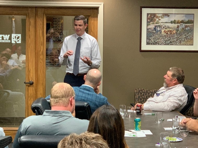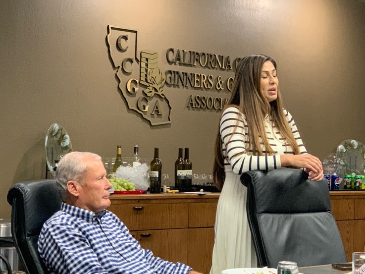 The Texas Agricultural Lifetime Leadership Cohort was in California this week, and the Association hosted the group for a very special dinner at the Association offices in Fresno. Speaking at the event was the Association’s Assistant Vice President Priscilla Rodriguez (CALF Class 50) and Assistant Vice President Christopher McGlothlin (CALF Class 52), who both shared their leadership journeys and experiences through the California Ag Leadership Program, as well as discussing the critical issues they are working on. In addition, special guest speakers also presented their experiences and issues including Don Cameron, of Terranova Ranches and current Chairman of the Board of the California Department of Food and Agriculture (CDFA), Daniel Hartwig, President of the California Fresh Fruit Association, and Mandy Critchley (CALF Class 37). Association President/CEO Roger A. Isom served as the host and emcee for the event.