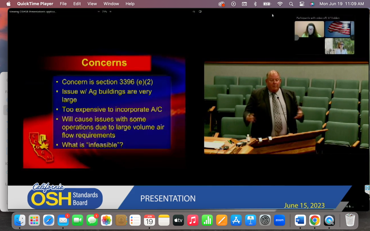 In a special unprecedented presentation, Association President/CEO Roger Isom testified before the CalOSHA Standards Board on their proposed new standard “Heat Illness Prevention in Indoor Places of Employment.” The presentation occurred last week during the CalOSHA Standards Board regular Board Meeting, but the presentation by the Association was the only item on the agenda and the Board allowed Isom 15 minutes to present the topic. As a reminder the proposed standard is triggered when indoor paces of employment hit 82 °F, and requires engineering controls to bring indoor temperatures to below 87 °F. This would apply to any cotton gin, nut huller or processor and any farm warehouse or shop building. The requirement to cool the buildings to below 87 °F is the primary issue and presents the biggest and most expensive challenge to meeting such a low target temperature. Isom provided cost estimates from $1 million for a single building to $9.5 million for multiple buildings to install air conditioning, but also stated it would present operational issues with cotton gins and almond hullers as those operations require large volumes of air to either move products from point A to point B, or is used to pull hulls, shells, and dust from the conveyance of products. The proposed regulation states this is only required unless it is not feasible, but “feasible” is not defined. The lack of a definition is what causes the most concern as it leaves it up to enforcement discretion and subjectivity. The Association emphasized the need to define “feasible” in the context of this regulation. No other presentation was provided and we will now have to wait and see what CalOSHA does with the proposed regulation in response.